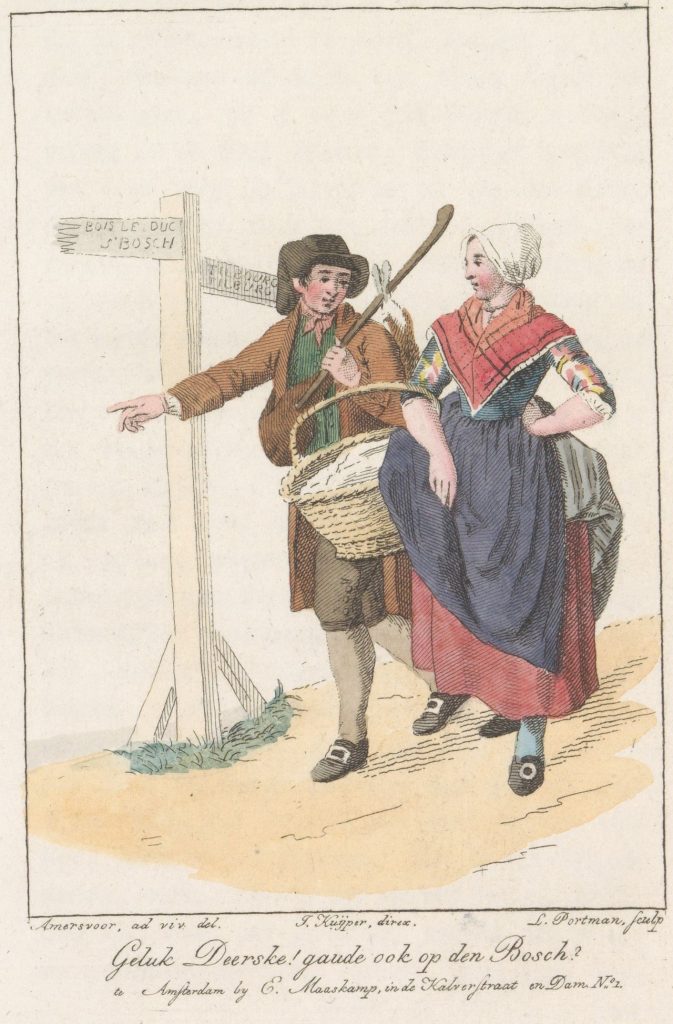 Lopend van Herstal via Tilburg kwam Agnes in Den Bosch terecht. Tot dan toe had ze de kost verdiend met “niets anders dan schooien”. Het was in Den Bosch, in herberg De Gouden Engel, dat ze verkering kreeg met een jongeman die Doris Soons heette. Hij was een kleermaker van beroep, en hij woonde daar, omdat zijn zwager Hendrik Stam de uitbater van het etablissement was. Het was gelegen in de Tolbrugstraat, een levendige straat bevolkt door soldaten, hoeren, handelaars en herbergen. We zouden Agnes een lang en gelukkig leven gunnen aan de zijde van deze kleermaker. Maar helaas. Ze had een jaar of vier verkering met hem. Maar hij had haar niets te bieden, zelfs haar eigen verteringen moest ze zelf betalen. Omdat ze niet wilde weten dat ze bedelde, zoals ze zei, kocht ze dan steeds voor ongeveer acht gulden spelden en naalden om te verkopen. Als ze met dat handeltje iets verdiend had ging ze terug naar Den Bosch en kon ze tijd met Doris doorbrengen. Ik krijg bijna de indruk dat ze hém moest onderhouden. Behalve spelden en naalden, die ze bij Rumposen en Koppers kocht in Den Bosch, kocht ze in Nijmegen koopwaar in; Roomse prentjes en gebeden- en kerkboekjes, om die langs de deuren te verkopen.